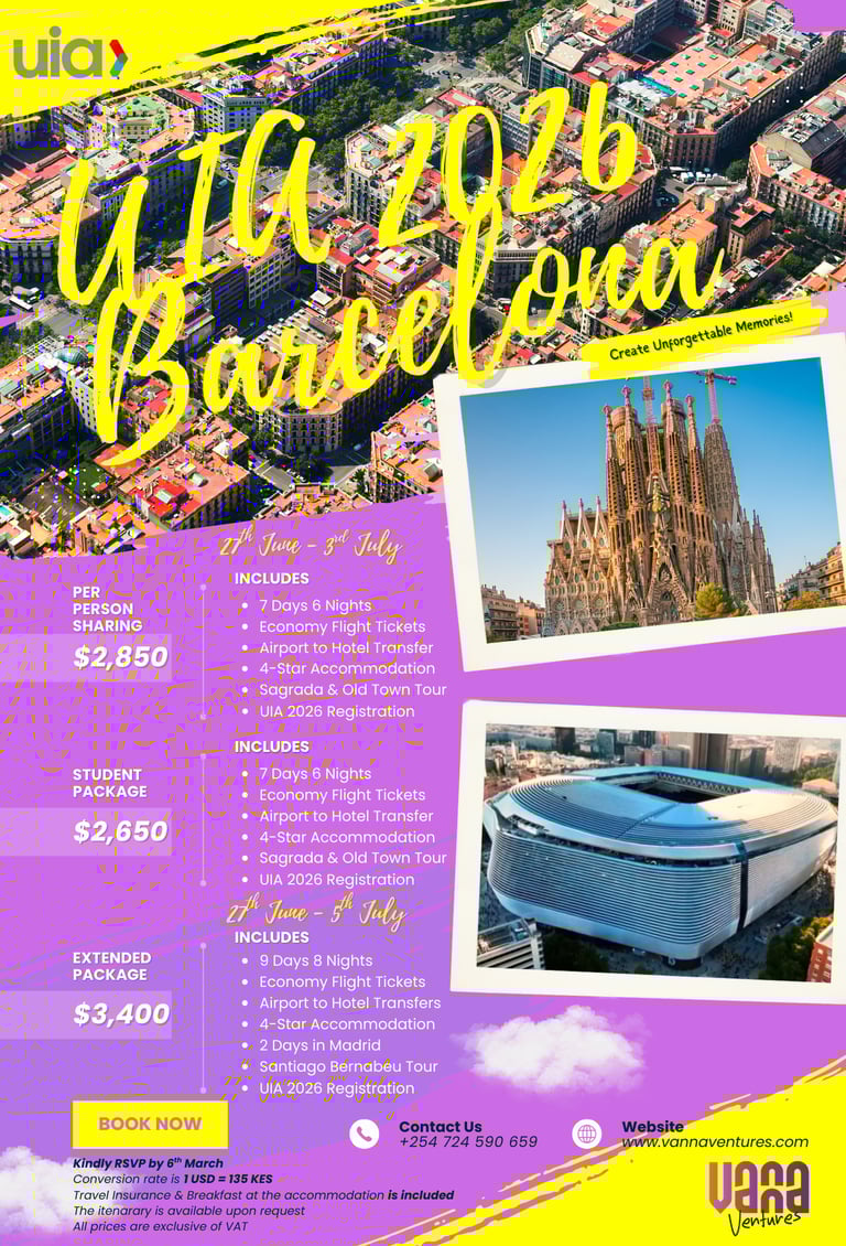 Reach out to Vanna Ventures for transport inquiries or to join the UIA 2026 Barcelona trip.